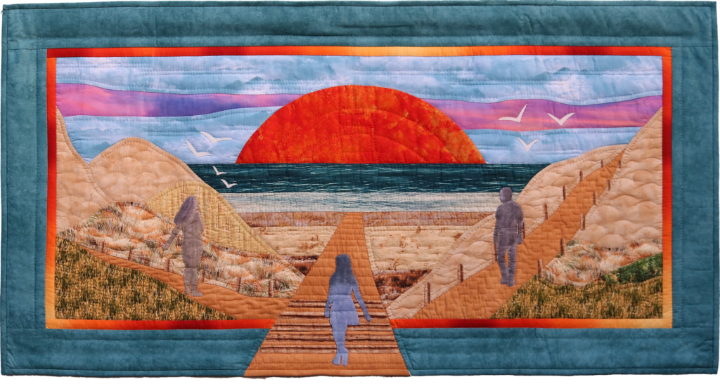 In deze quilt is het Pelgrimsgebed verbeeld,
